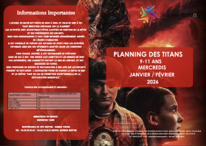 Planning des Titans (9-11 ans) pour les mercredis Janvier / Février 2026