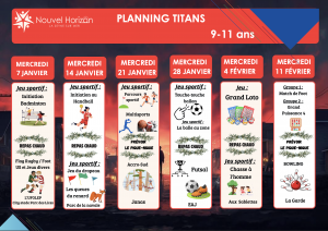 Planning des Titans (9-11 ans) pour les mercredis Janvier / Février 2026