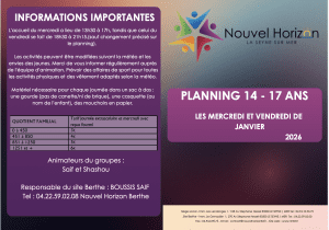 💥Voici le planning du groupe Pep’s (14–17 ans) 💥