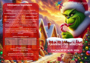 Pendant les vacances de décembre, venez participer à des activités sur le thème de Noël avec les Minions 🎉🍌 ! Jeux, créativité et moments amusants garantis pour tous les enfants de 6 à 12 ans.