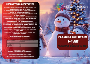Pendant les vacances de décembre, rejoignez-nous pour des activités sur le thème de Noël 🎉 ! Jeux, créativité et moments conviviaux garantis pour tous les enfants de 9 à 11 ans.